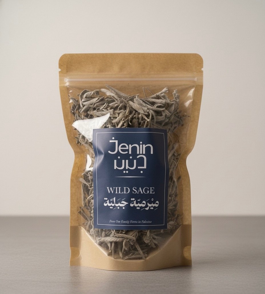 Foraged by hand from Jenin’s hills and dried in the sun, this sage is intensely aromatic, earthy, and herbaceous. Rich in antioxidants, it can be used in cooking, steeped as tea, or burned after meals to cleanse the air and add aroma.